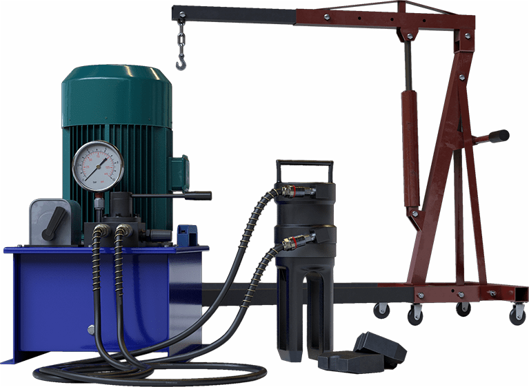 Подвод РВД сверху к корпусу пресса посредством угловых штуцеров и быстроразъёмных соединений обеспечивает возможность работы пресса в любом пространственном положении.